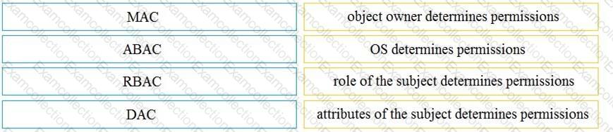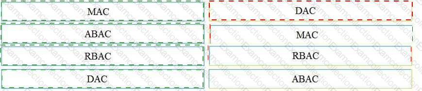 Drag and drop the access control models from the left onto the correct descriptions on the right.