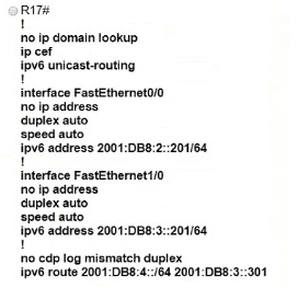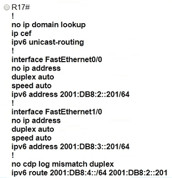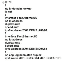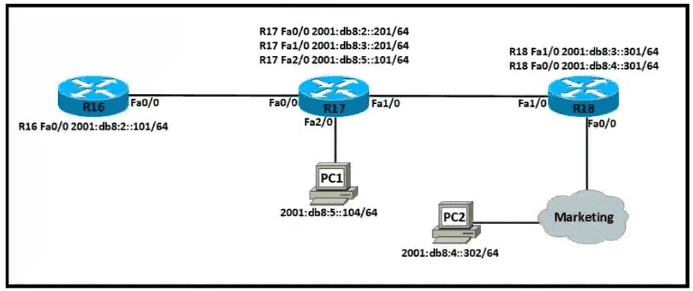 Which IPv6 configuration is required for R17 to successfully ping the WAN interface on R18?