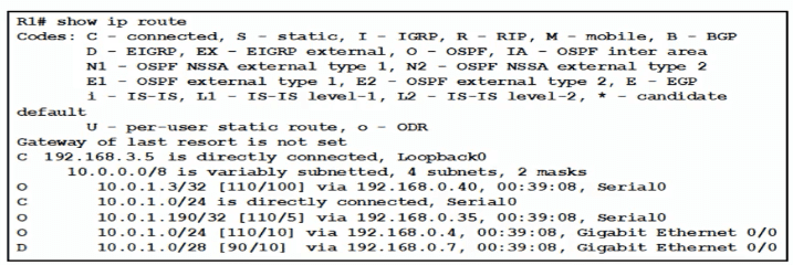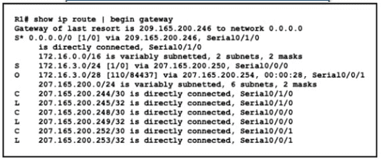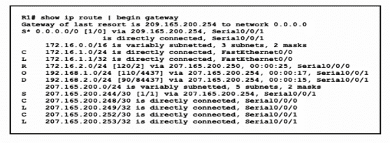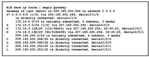 Refer to the exhibit. What is the value of the administrative distance for the default gateway?