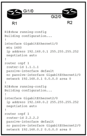 OSPF must be configured between routers R1 and R2. Which OSPF configuration must be applied to router R1 to avoid a DR/BDR election?