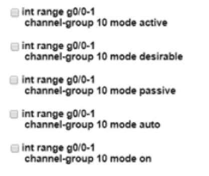 The LACP EtherChannel is configured, and the last change is to modify the interfaces on SwitchA to respond to packets received, but not to initiate negotiation. The interface range gigabitethernet0/0-15 command is entered. What must be configured next?