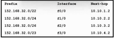 Refer to the exhibit. Which next hop is used to route packets to the application server at 152.168.32.85?