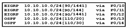 Router R1 resides in OSPF Area 0. After updating the R1 configuration to influence the paths that it will use to direct traffic, an engineer verified that each of the four Gigabit interfaces has the same route to 10.10.0.0/16. Which interface will R1 choose to send traffic to reach the route?