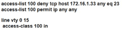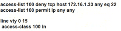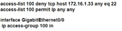 Which configuration for RTR-1 deniess SSH access from PC-1 to any RTR-1 interface and allows all other traffic?