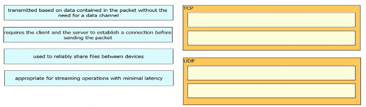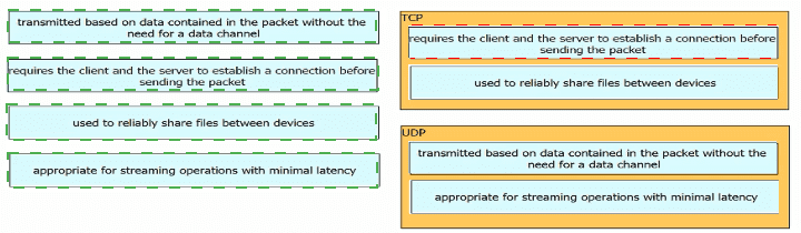 Drag and drop the TCP or UDP details from the left onto their corresponding protocols on the right.