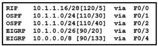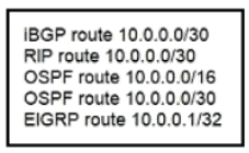 Packets received by the router from BGP enter via a serial interface at 209.165.201.10. Each route is present within the routing table. Which interface is used to forward traffic with a destination IP of 10.10.10.24?
