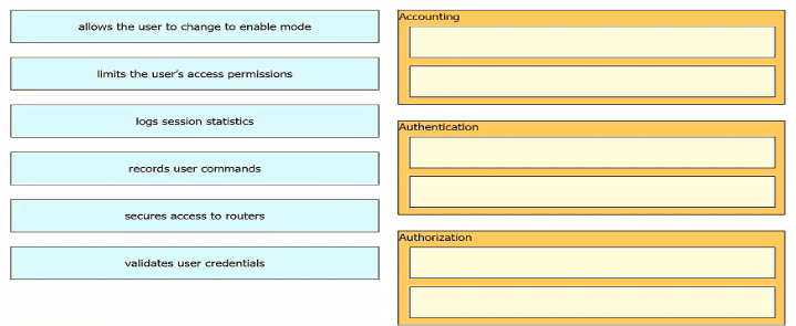 Drag and drop the descriptions of AAA services from the left onto the corresponding services on the right.