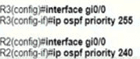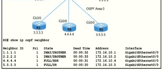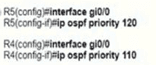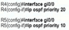 R5 is the current DR on the network, and R4 is the BDR. Their interfaces are flapping, so a network engineer wants the OSPF network to elect a different DR and BDR. Which set of configurations must the engineer implement?