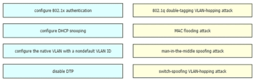 Drag and drop the attack-mitigation techniques from the left onto the Types of attack that they mitigate on the right.