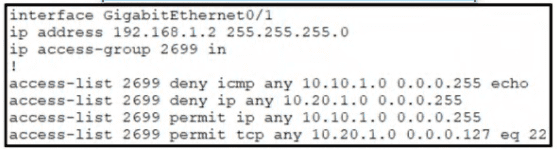 An access list is required to permit traffic from any host on interface G0/0 and deny traffic from interface G/0/1. Which access list must be applied?