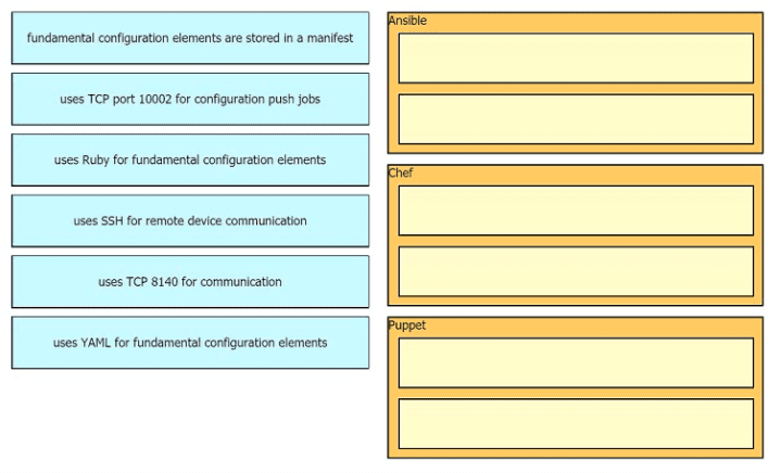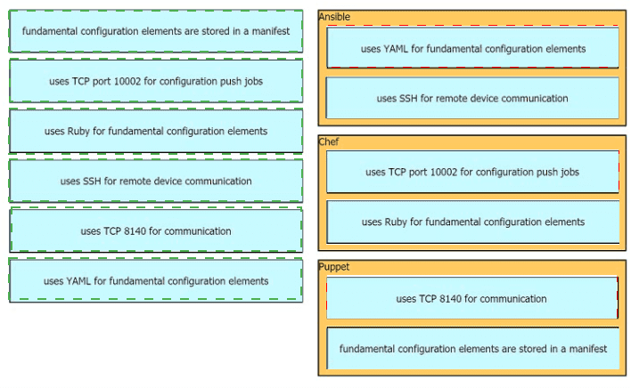 Drag drop the descriptions from the left onto the correct configuration-management technologies on the right.