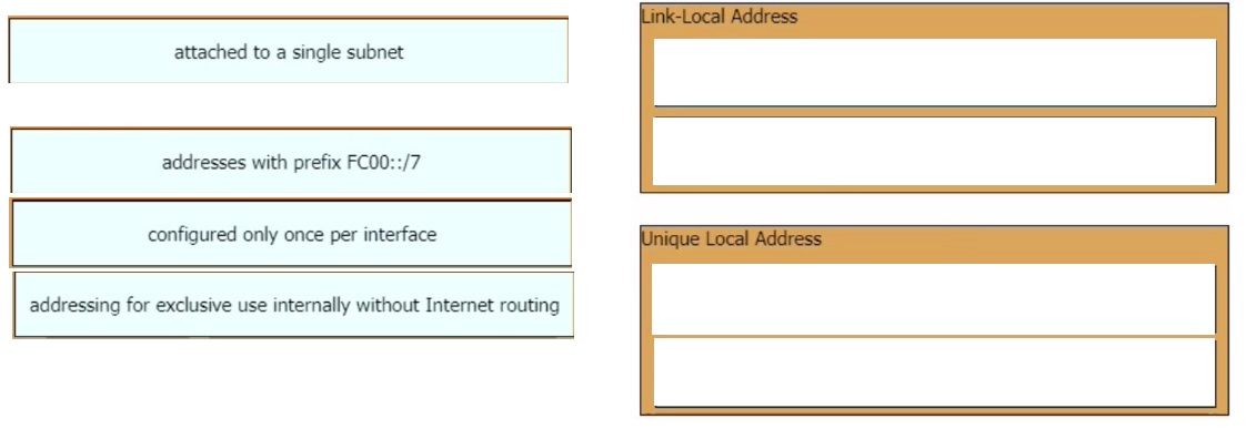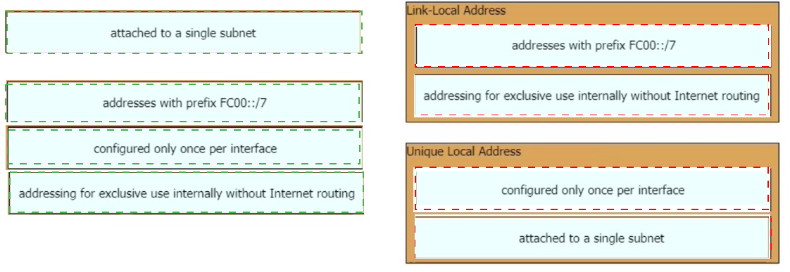 Drag and drop the IPv6 address type characteristics from the left to the right.
