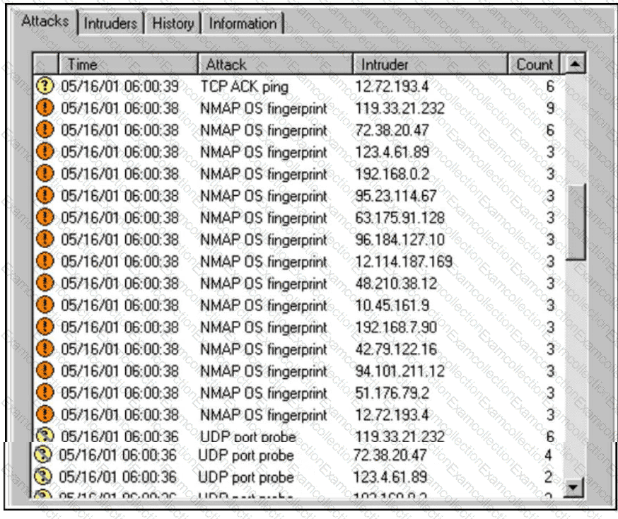 An increase in company traffic is observed by the SOC team. After they investigate the spike, it is concluded that the increase is due to ongoing scanning activity. Further analysis reveals that an adversary used Nmap for OS fingerprinting. Which type of indicators used by the adversary sits highest on the Pyramid of Pain?