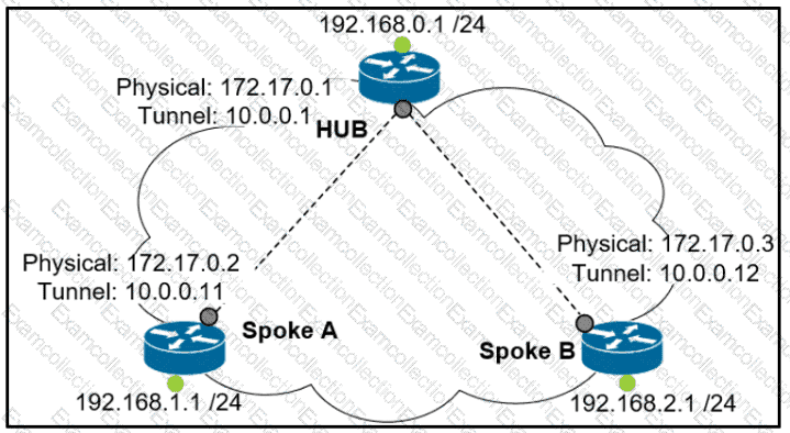 Which interface configuration must be configured on the spoke A router to enable a dynamic DMVPN tunnel with the spoke B router?