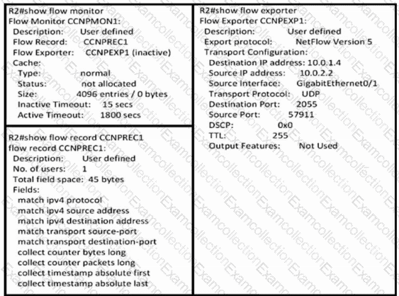 Refer to the exhibit. An engineer uses NetFlow to troubleshoot a voice quality issue from the branch office and notices that the traffic is not arriving in the correct format to the collector. Which configuration resolves the issue?
