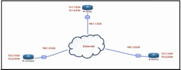 The network administrator must mutually redistribute routes at the Chicago router to the LA and NewYork routers. The configuration of the Chicago router is this: