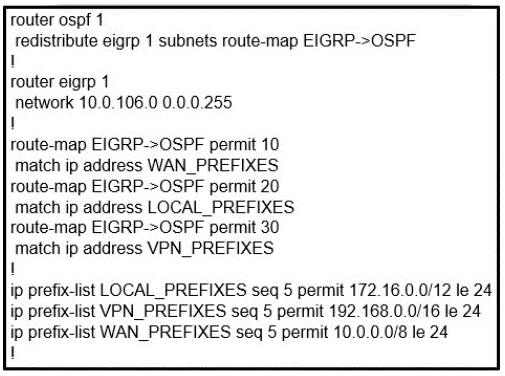 The network administrator configured redistribution on an ASBR to reach to all WAN networks but failed Which action resolves the issue?
