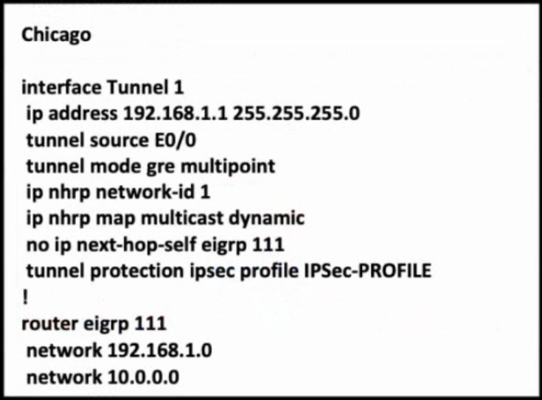 After the configuration, the LA router receives all the NewYork routes, but NewYork router does not receive any LA routes. Which set of configurations fixes the problem on the Chicago router?
