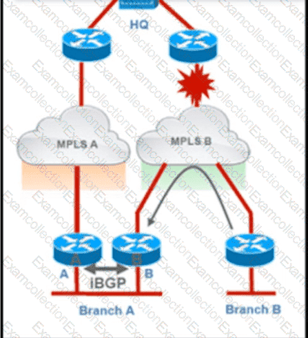 Troubleshoot and ensure that branch B only ever uses the MPLS B network to reach HQ. Which action achieves this requirement?