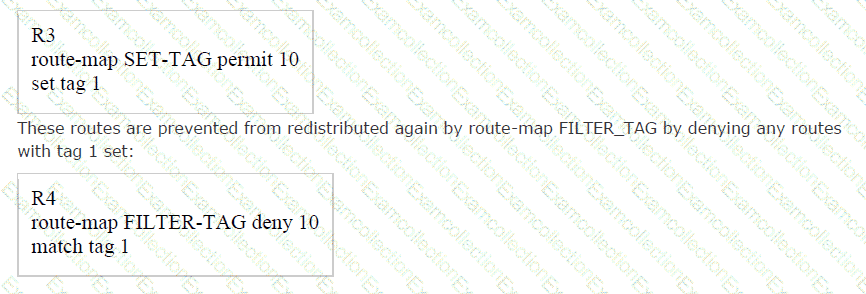 Refer to the exhibit. A network administrator configured mutual redistribution on R1 and R2 routers, which caused instability in the network. Which action resolves the issue?
