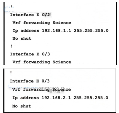 Refer to the exhibit. The IT router has been configured with the Science VRF and the interfaces have been assigned to the VRF. Which set of configurations advertises Science-1 and Science-2 routes using EIGRPAS 111?