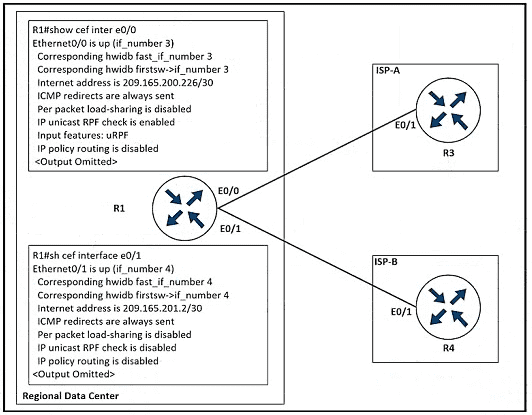 Refer to the exhibit. The company implemented uRPF to address an antispoofing attack. A network engineer received a call from the IT security department that the regional data center is under an IP attack Which configuration must be implemented on R1 to resolve this issue?