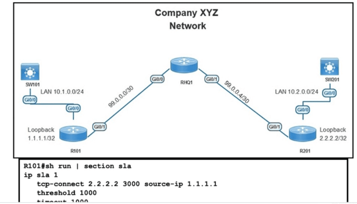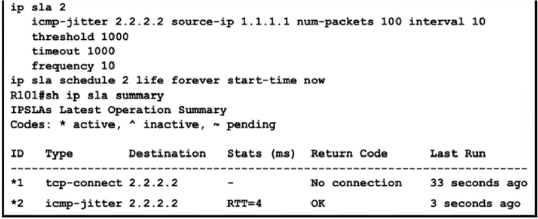 Refer to the exhibit While troubleshooting an issue on the network, an engineer notices that a TCP Connect operation failed on port 3000 between R101 and R201. Which command must be configured on R201 to respond to the R101 IP SLA configurations with a control connection on UDP port 1967?