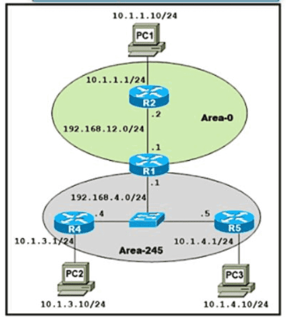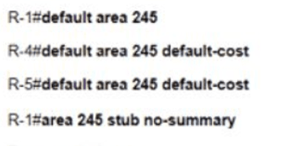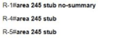 Refer to the exhibit A network administrator is troubleshooting to reduce the routing table of R4 and R5 to learn only the default route to communicate from Inter-Area and Intra-Area networks Which configuration resolves the issue?