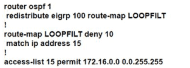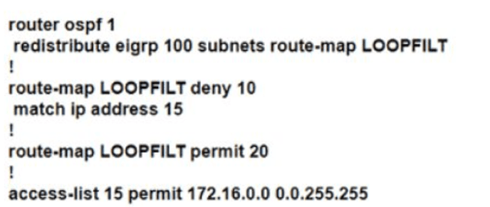 Refer to the exhibit. An engineer Is troubleshooting a routing loop on the network to reach the 172.16.3.0/16 from the OSPF domain. Which configuration on router R1 resolves the Issue?