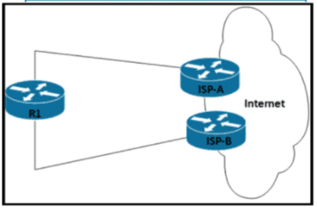 Refer to the exhibit. Router R1 peers with two ISPs using static routes to get to the internet. The requirement is that R1 must prefer ISP-A under normal circumstances and failover to ISP-B if the connectivity to ISP-A is lost. The engineer observes that R1 is load balancing traffic across the two ISPs Which action resolves the issue by sending traffic to ISP-A only with failover to ISP-B?
