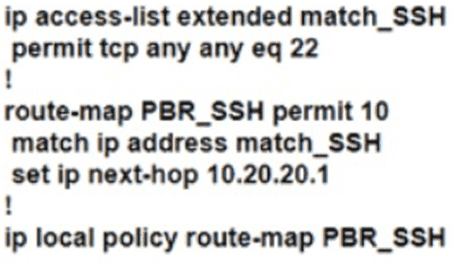 Refer to the exhibit. R1 uses SP1 as the primary path. A network engineer must force all SSH traffic generated from R1 toward SP2. Which configuration accomplishes the task?