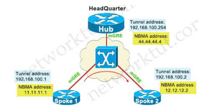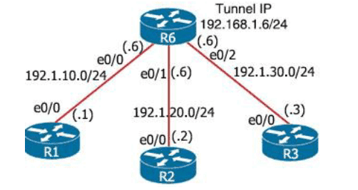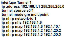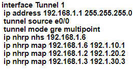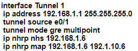 An engineer must establish multipoint GRE tunnels between hub router R6 and branch routers R1, R2, and R3. Which configuration accomplishes this task on R1?