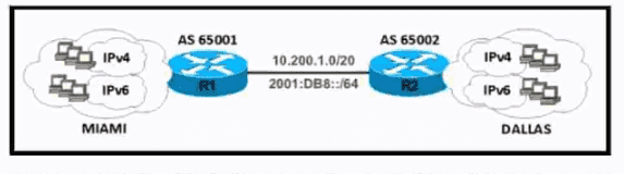 Refer to the exhibit. A network engineer configured routers R1 and R2 with MP-BGP. The engineer noticed that the routers cannot exchange any IPv6 routes, however, the IPv4 neighbor relationship is working fine. Which configuration must the engineer apply to router R2 to exchange IPv6 routes?