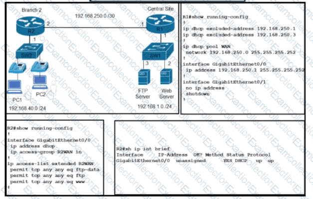 Refer to the exhibit. Which configuration is required for R2 to get the IP address from the DHCP server?
