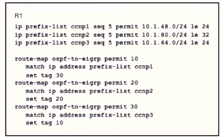 An engineer wanted to set a tag of 30 to route 10 1.80.65/32 but it failed How is the issue fixed?