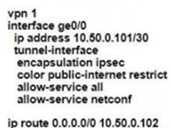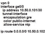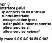 An engineer must configure two branch WAN Edge devices where an Internet connection is available and the controllers are in the headquarters. The requirement is to have IPsec VPN tunnels established between the same colors. Which configuration meets the requirement on both WAN Edge devices?