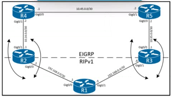 Refer to the exhibit. An engineer Is designing a redistribution solution for a customer. The customer recently acquired another company and decided to integrate the new network running RlPv1 with the company's existing network. Which redistribution technique must the engineer select to ensure the multipoint two-way redistribution does not cause routing loops?