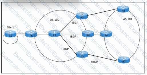 Refer to the exhibit. An engineer working for a private service provider with an employee ID 5207:22:409 must configure iBGP multipath load sharing across the three paths. Which two commands must be run on the PE router? (Choose two.)