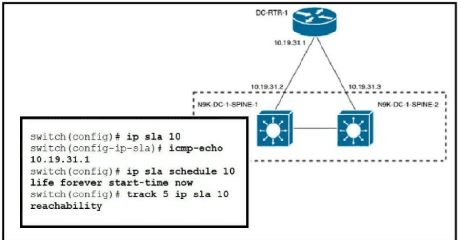 Refer to the exhibit. An engineer must invoke a Python script that alerts the operations team when the router DC-RTR-1 becomes unreachable. Which configuration set accomplishes this task?