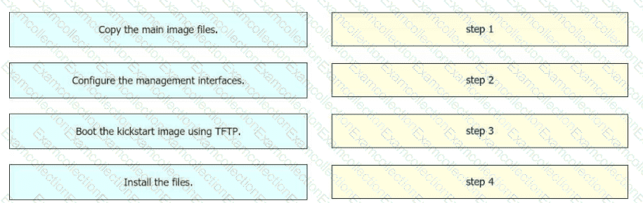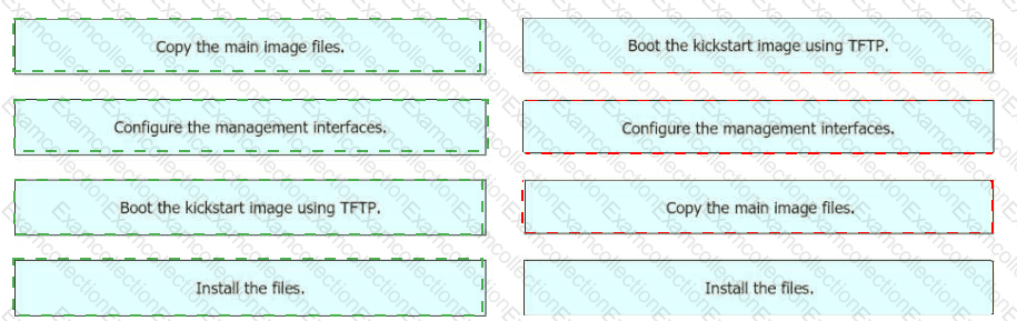 Drag and drop the steps on the left onto the order that they must be implemented on the right to recover a fabric interconnect when there is no working image on the bootflash.