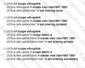 An engineer must implement private VLANs for a group of Cisco UCS 8-Series servers. The primary VLAN is present, But the secondary VLAN must Be added to Both fabrics. Which configuration set accomplishes this task?