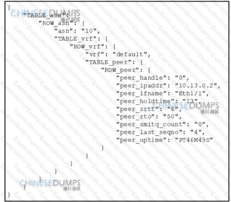 Refer to the exhibit. An engineer uses Python in Cisco NX-OS guest shell to retrieve the configuration of the EIGRP ASN on interface eth1/1. The engineer has written this script: