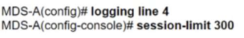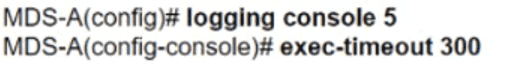 A network engineer needs to configure system logging on the Cisco MDS Series Switch. The messages must be displayed with the severity level of "warning" and above. For security reasons, the users must be logged out of the console after 5 minutes of inactivity. Which configuration must be applied to meet these requirements?
