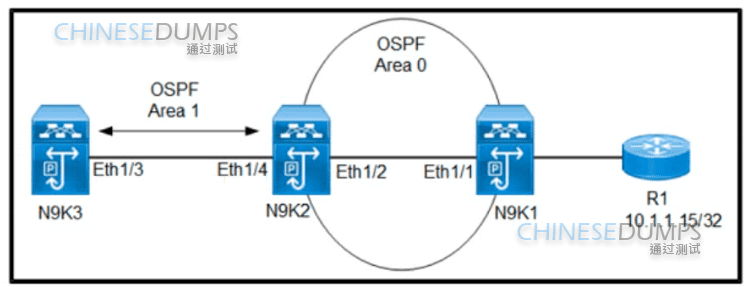 Refer to the exhibit. The network 10.1.1.15/32 is advertised to N9K1. N9K2 and N9K3 OSPF neighbors in area 1. Which configuration advertises network 10.1.1.15/32 as LSA type 7 to N9K3?