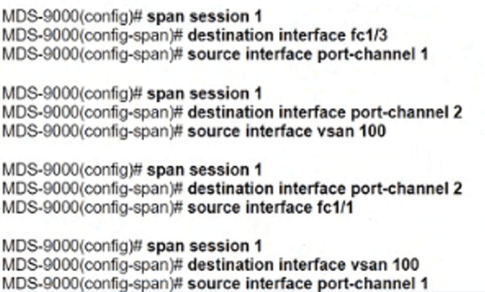 An engineer must configure a Cisco MDS 9000 Series Switch for traffic analysis from the storage array. The storage array is connected to the interface fc2/1 in VSAN 10 and the traffic analyzer to fc4/2. The capture file must include ingress and egress traffic between the switch and the storage array. Also, only traffic in VSAN 10 must be captured. Which configuration set meets these requirements?