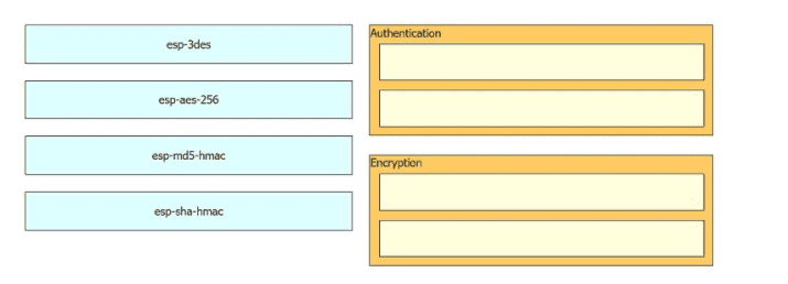 Drag and drop the cryptographic algorithms for IPsec from the left onto the cryptographic processes on the right.