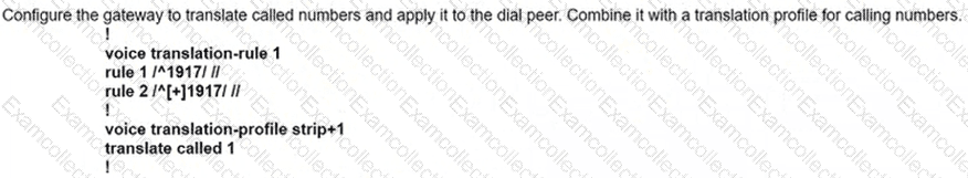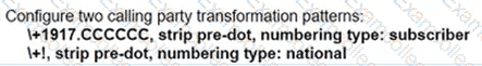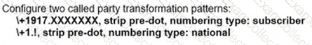 When a call Is delivered to a gateway, the calling and called party number must be adapted to the PSTN service requirements of the trunk group. If a call is destined locally, the + sign and the explicit country code must be replaced with a national prefix. For the same city or region, the local area code must be replaced by a local prefix as applicable. Assuming that a Cisco UCM has a SIP trunk to a New York gateway (area code 917). which two combinations of solutions localize the calling and called party for a New York phone user? (Choose two.)