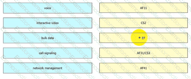 According to the QoS Baseline Model, drag and drop the applications from the left onto the Per-Hop Behavior values on the right.