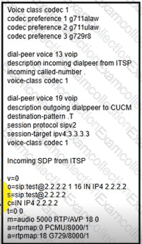Refer to the exhibit. Which outgoing m-line SDP is sent to Cisco UCM after matching the appropriate dial peers via Cisco Unified Border Element?