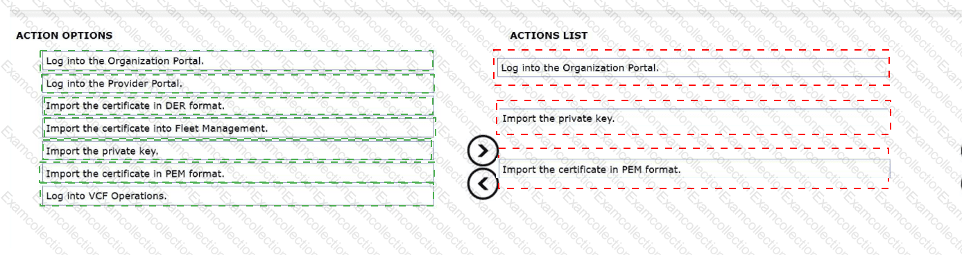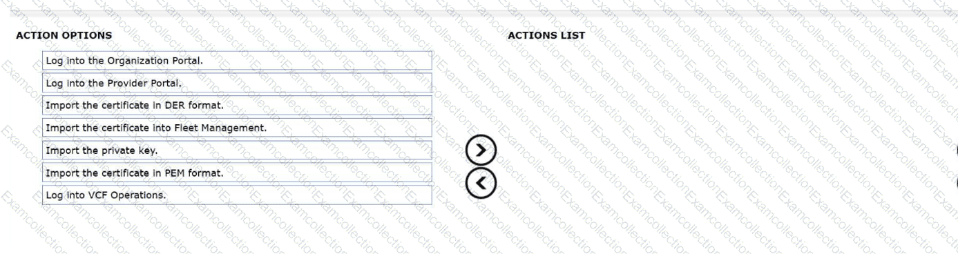 An organization administrator has been tasked with adding a certificate to their organization in VCF Automation. What three actions are required? (Choose three.)